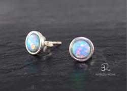 Ohrstecker aus 925 Silber mit Opalimitation hellbl