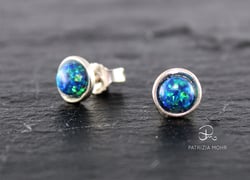 Ohrstecker aus 925 Silber mit Opalimitation dunkel